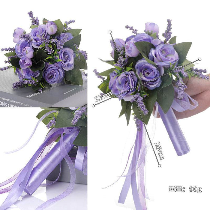 Elevate your outdoor wedding photography with the Dio Simulated Rose Bouquet, designed in a stunning forest style that perfectly complements the beauty of nature. This exquisite bouquet features a blend of soft silk flowers in milky white, pink, lake blue, and delicate purple hues, creating a romantic and elegant look for the modern bride.