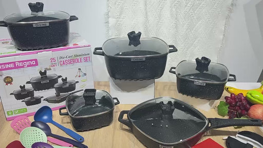 25-Piece Premium Non-Stick Medical Stone Cookware Set in Black and Pink