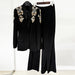 Star Fashion Heavy Industry Diamond Beading Stand Collar Blazer Slit Pants Suit