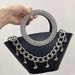 - Designed with a single shoulder strap for comfortable crossbody wear and a dazzling diamond round handle that doubles as an eye-catching statement piece