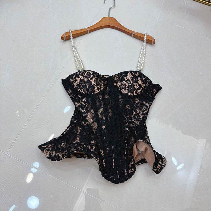 Elegant Lace Embroidered Camisole Vest & Micro-Pants Set